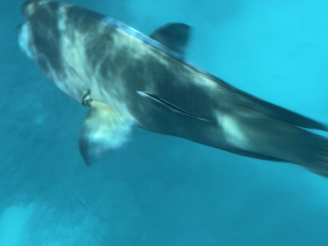 アウターリーフに住み着いてる1m級のナポレオンフィッシュが寄ってきます。