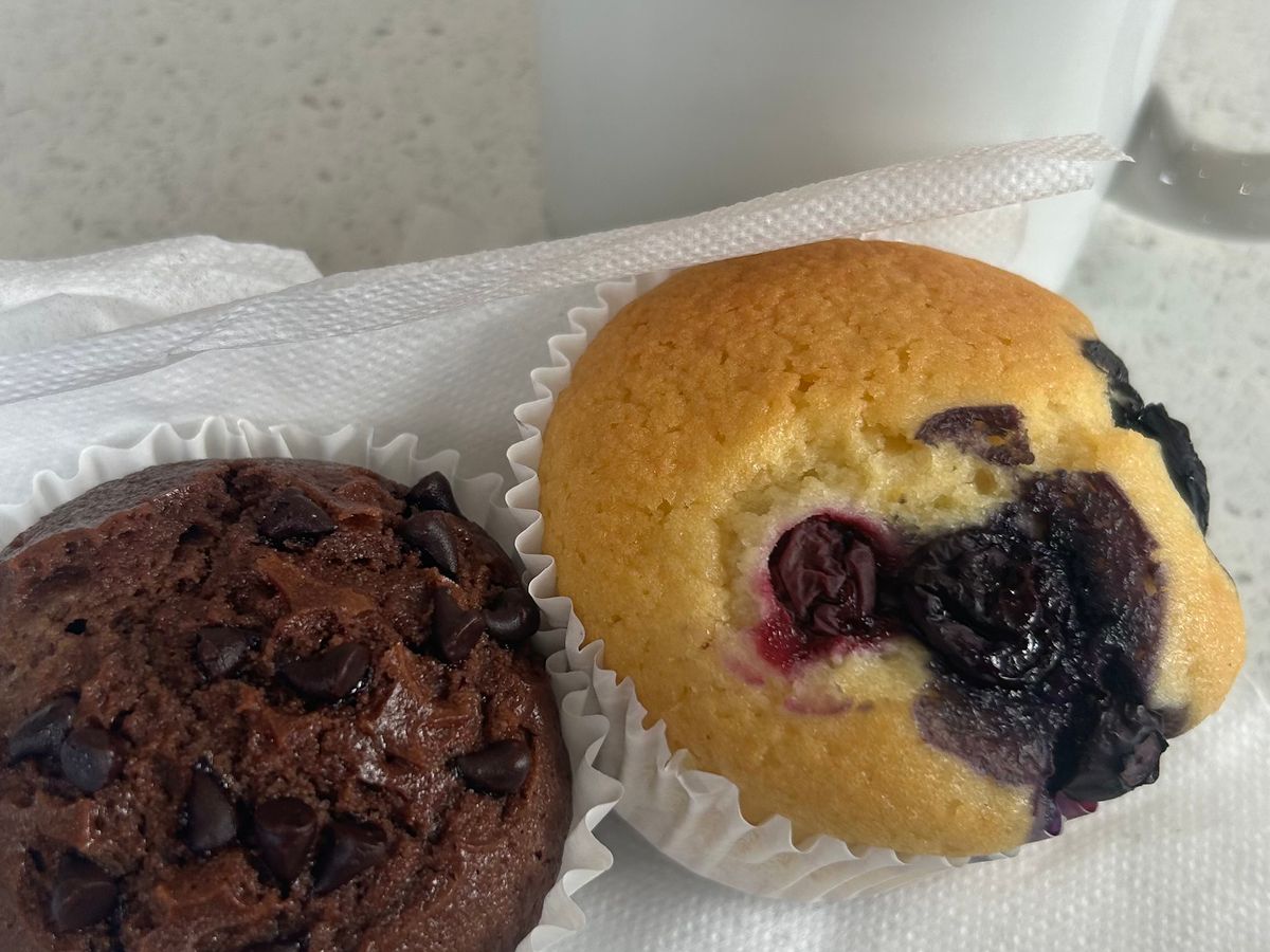 8:00前に乗り込み、早速マフィン2種とミニサンドウィッチと温かい紅茶(orコーヒー)をいただけました。