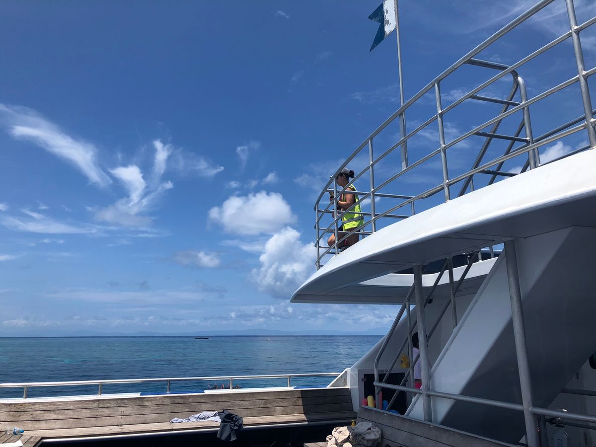 といった現実はあれど、海の上でのんびり半日を過ごし、セカイ最大のサンゴ礁を見るのは滅多にできないこと。美味しいとは言い難いけれど、暖かい食事、コーヒー、お菓子、ケーキなども出てくる。ホスピタリティに優れ、日本語も堪能な、そもそも日本人のスタッフも多数。