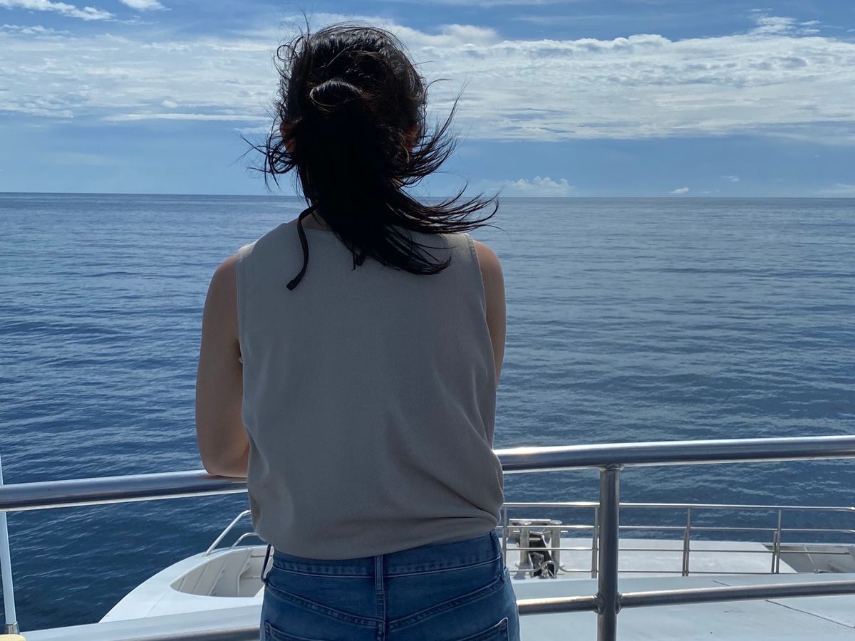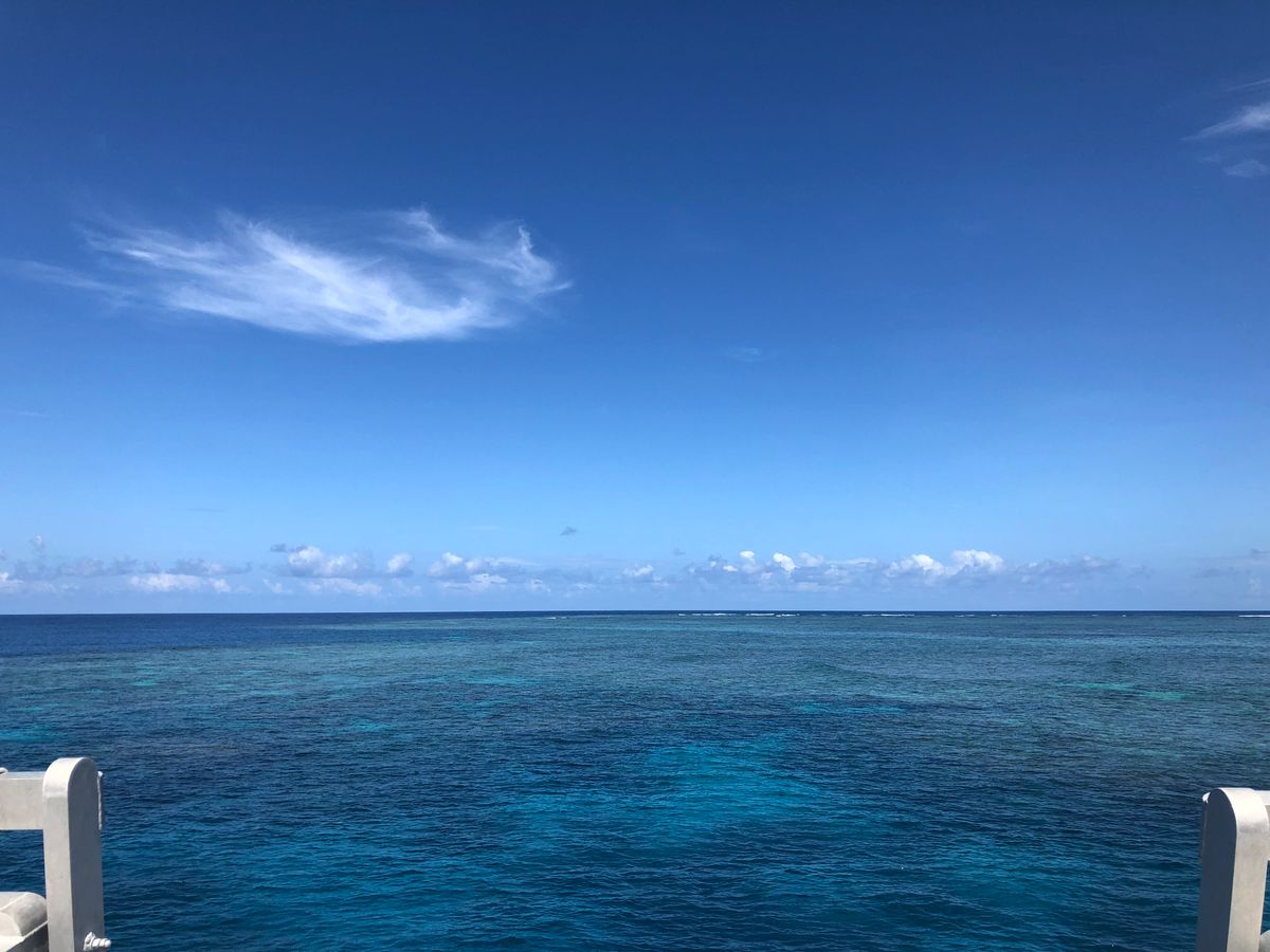 ポイントに行くまでの時間も船内で外に出て海の香りと風を感じながら永遠に広がるグレートバリアリーフの海をパノラマで見ていました。影になっている部分もあるので寒い線内にいるよりも絶対に外に出ることをお勧めします。