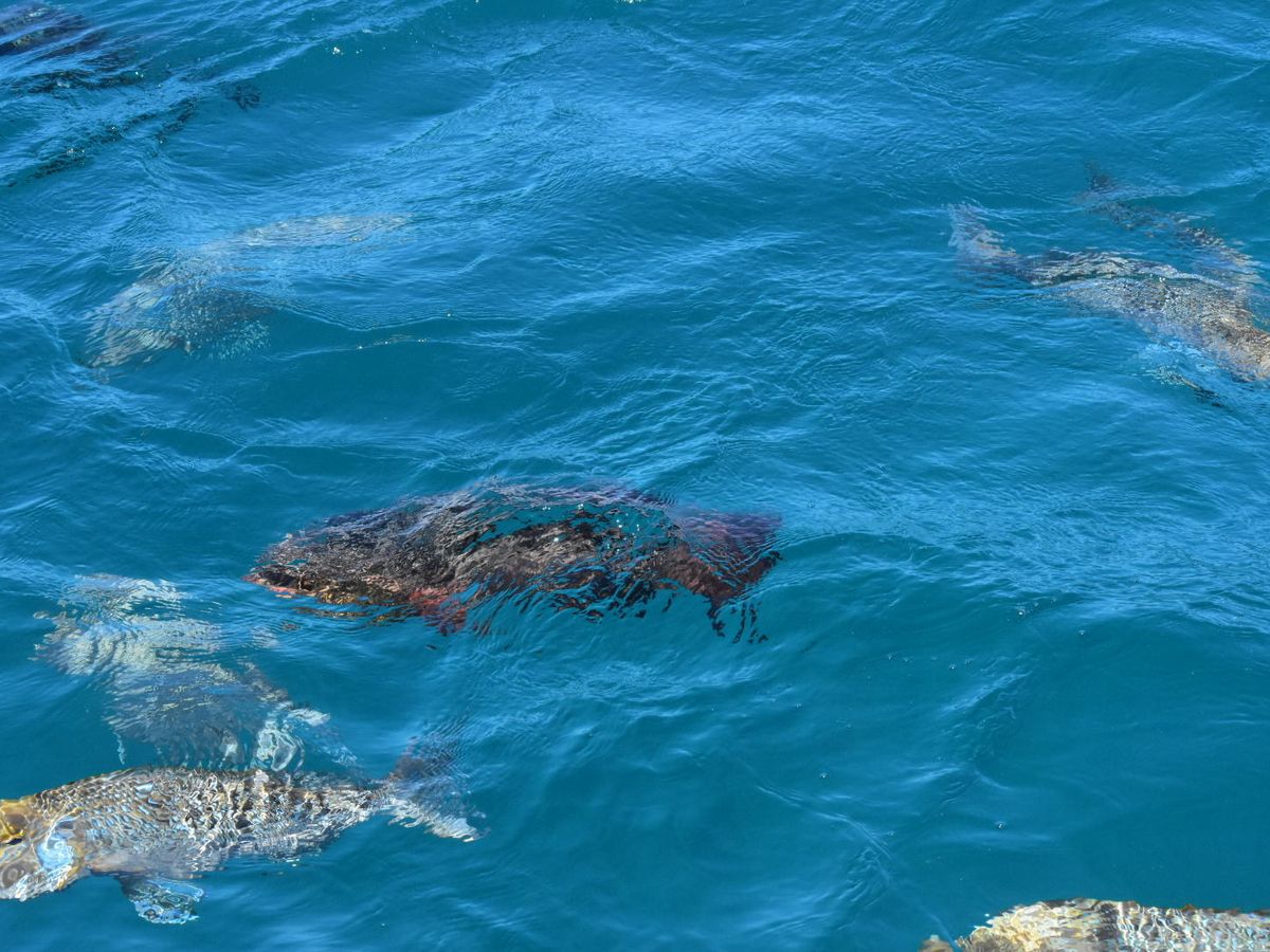 さて、肝心のサンゴ礁見学はと言えば、熱帯の海とは違って、カラフルさはあまりない。カメがいる場合もあるらしいが、ほとんどの場合は色味に欠けた魚ばかり。天気の良い1日ではあったものの、写真のような景色は望めず、それはヘリなり飛行機に乗って、それも海の綺麗な日だけのことのようで。