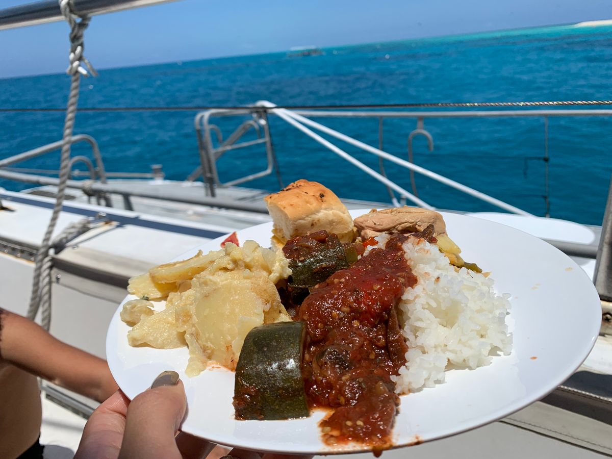 グリーン島からアウターリーフに移動するクルーズでも、風が気持ちよく、途中で出してくれるケーキやチーズなどのスナック類も美味しかったです。
