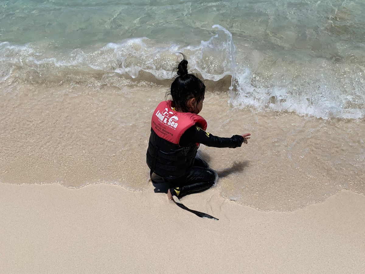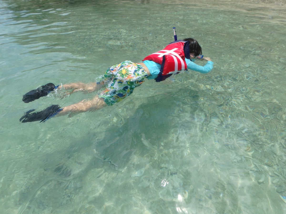 島の滞在時間は5時間程度だったが、小学生の子どもたちは、シュノーケリング体験と自由時間に浜辺で泳いで満足していた。