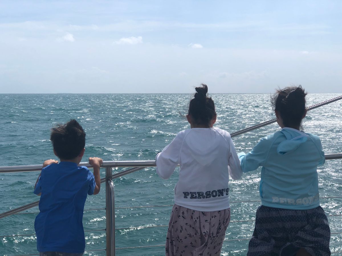 最初は夫と交代で1歳児を見ながら4歳児とスノーケリングをし、そのあと4人でグラスボートに乗りました。その後はビュッフェランチを食べ、ビーチでゴロゴロしながら泳いだり島の散歩をしたりしました。