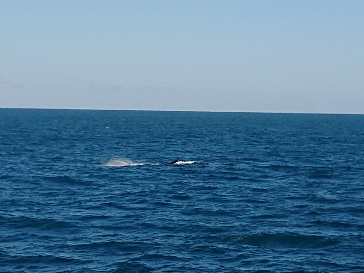 波打際でぱちゃぱちゃ水遊びしていたときから、遠くに鯨が潮を吹いているのが見えていました。
