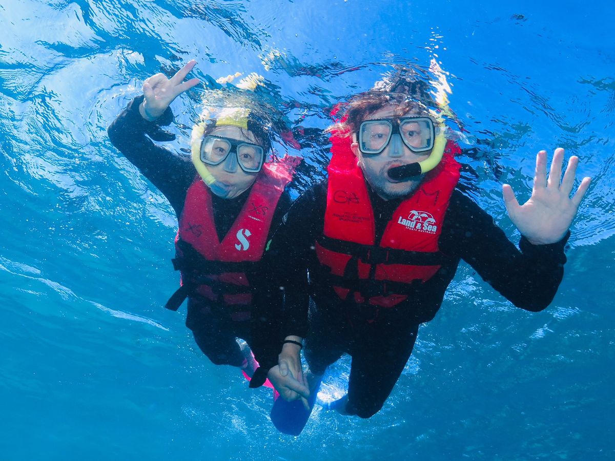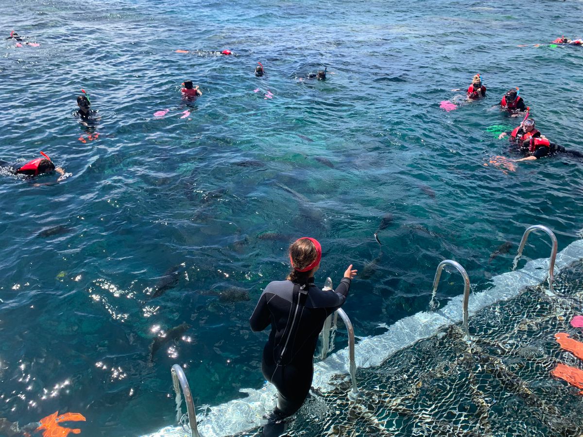 冬のオーストラリアなので、寒いかと心配しましたが、シュノーケリングも出来て良かったです。8歳の子どもも寒くなく潜れてました。海に入ってすぐにナポレオンフィッシュが見れて大興奮!すぐにどっかに行ってしまいましたが、家族全員が見れたので良かったです。餌付けの時間があり、その時に潜ってればもっと沢山の魚と、近くでナポレオンフィッシュが見れるので、その時に潜るのをお勧めします。冬に行ったので、海の透明度・波があったので夏に行けたらまた違った海が見れるかなぁと思いました。潜水艇でも、ナポレオンフィッシュが見れましたよ。子ども達も大満足でとっても楽しかったです。