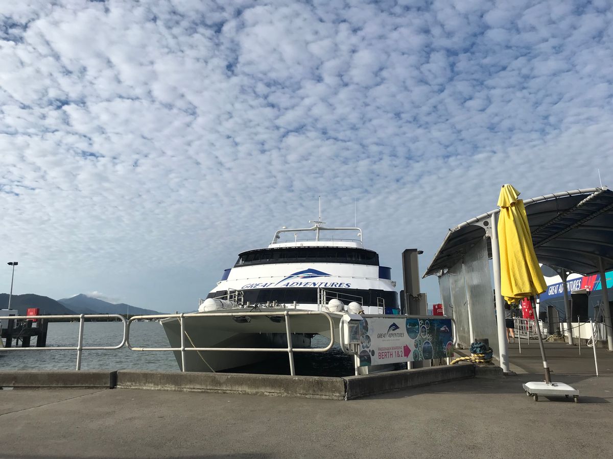 催行会社のグレートアドベンチャーさんは、日本人スタッフも多く、船もきれいで安心です。乗り込む時に渡されるスケジュール表や地図も日本語でわかりやすいです。グリーン島のフリータイムは島を一周してみました。海岸を歩いていたら、遠くにクジラがバシバシ見えてラッキーでした!アウターリーフのポンツーンに行く船の中で、ダイビングのスタート時間を個別に伝えられるのですが、12時半すぎに到着して、すぐに半潜水艇に乗り、そのあと、すぐにランチして、13時半のダイビング集合は、とにかく時間に余裕なくキツかったです。どうにかならないものですかねぇ。結局、私はダイビング技術を会得できず、潜れませんでした。以前やったセブ島の体験ダイビングは、チャラかったですが、オーストラリアは厳しいとのこと。仕方がないですわねf(^_^)。でも、シュノーケルでも十分楽しめましたよ!!写真もいっぱい撮ってくれますが、販売額が、ちょっとお高いので気を付けてください。