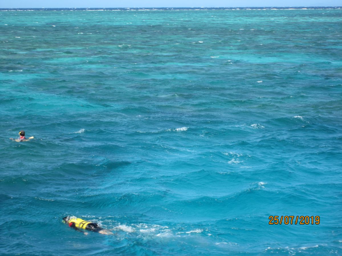 海はすごくきれいで、お目当てのグレートバリアリーフも魚もたくさん見れました。ただ、時期が冬だったためか、なかなか寒かったので、シュノーケリングはある程度で切り上げ、セミサブマリンやグラスボトムボートツアーを楽しみました。また、13時過ぎにはガイドによる餌付けタイムがあり、その際は50cm以上はあろうかというナポレオンフィッシュ・ウォーリー君を代表とする大きな魚たちをすぐ近くに見ることができて満足できました。