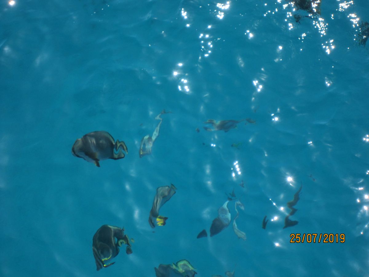 7月7日に体験ダイビングに参加させていただきました。この日は日本人は、私たち一組でした。風も有り波もありましたし船は結構揺れました。酔い止めは必須かもしれません。ダイビングは、カメさんの近くまで行けました。大きなシャコガイ?があったり、もちろん、隠れクマノミにもにも会え、クジラも見れて大満足でした。すこし残念だったのが、ランチタイムのビュッフェスタイルですが、ほとんど食べ物が無く・・・泣