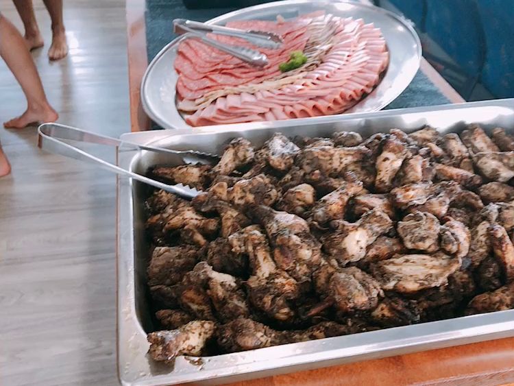 船に上がると、ランチをいただきました。お皿いっぱいにハムや野菜など乗っていましたが、味わうまもなく次のポイントについたので、2回目の体験ダイブの開始でした。