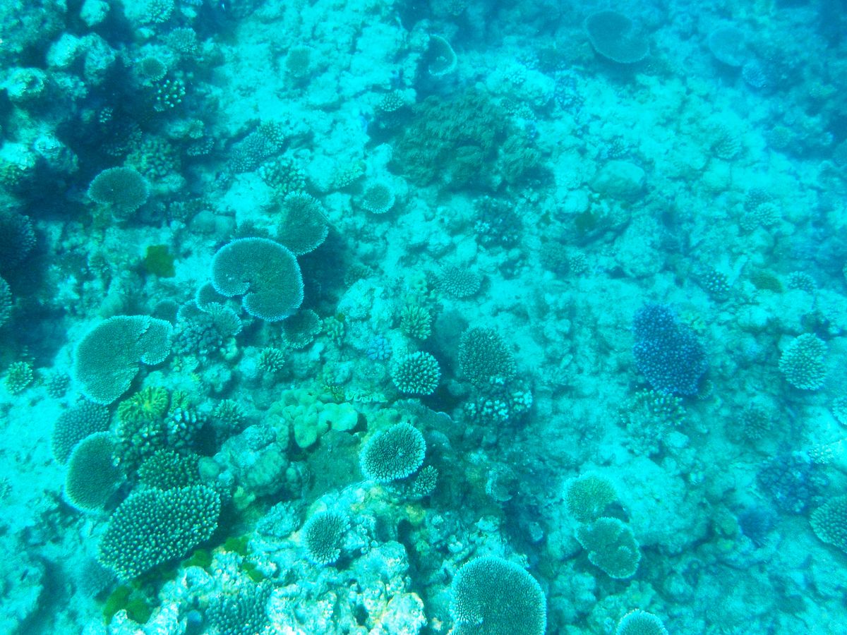 ポイントに到着しましたが、お客さんが多かったため、私達のグループは他の外国人グループが体験ダイブを始めている時にはシュノーケルをしていることになりました。船の周りはかなり濁っていて、正直(こんなものなの?)とがっかりしましたが、外国人の女性スタッフの方の浮き輪につかまり、珊瑚礁の方へと連れて行ってもらうと、さすが!と驚くほどの美しい珊瑚が広がりました。