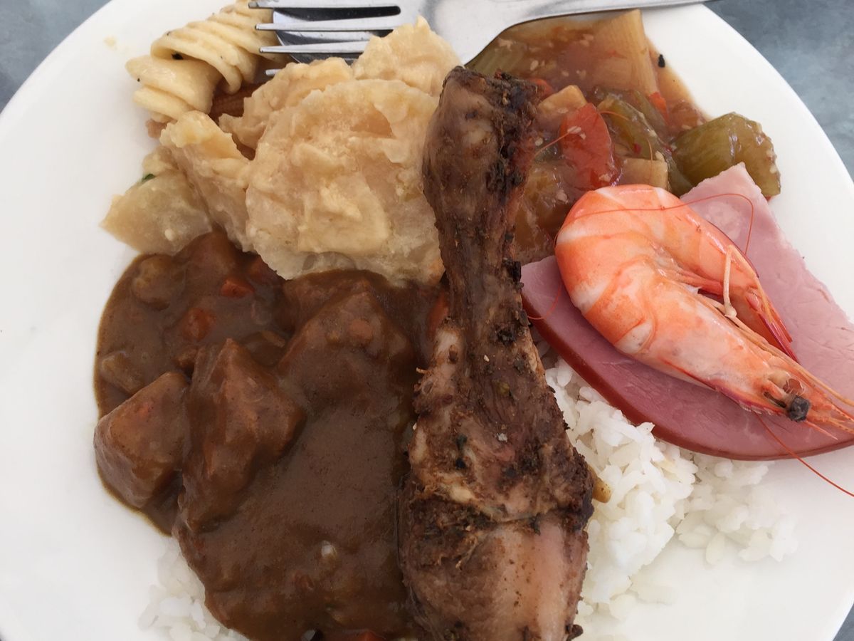 カレーは日本風、サンドウィッチは野菜がたくさん入ったラップサンドとチース、ハムのサンドでした。りんごやジュースもついて美味しかったです。バーでは、ビールが買えます。ランチ後、ヌーディビーチまでは、山を登って1.2キロ歩くのですが、15分くらいで行けました。