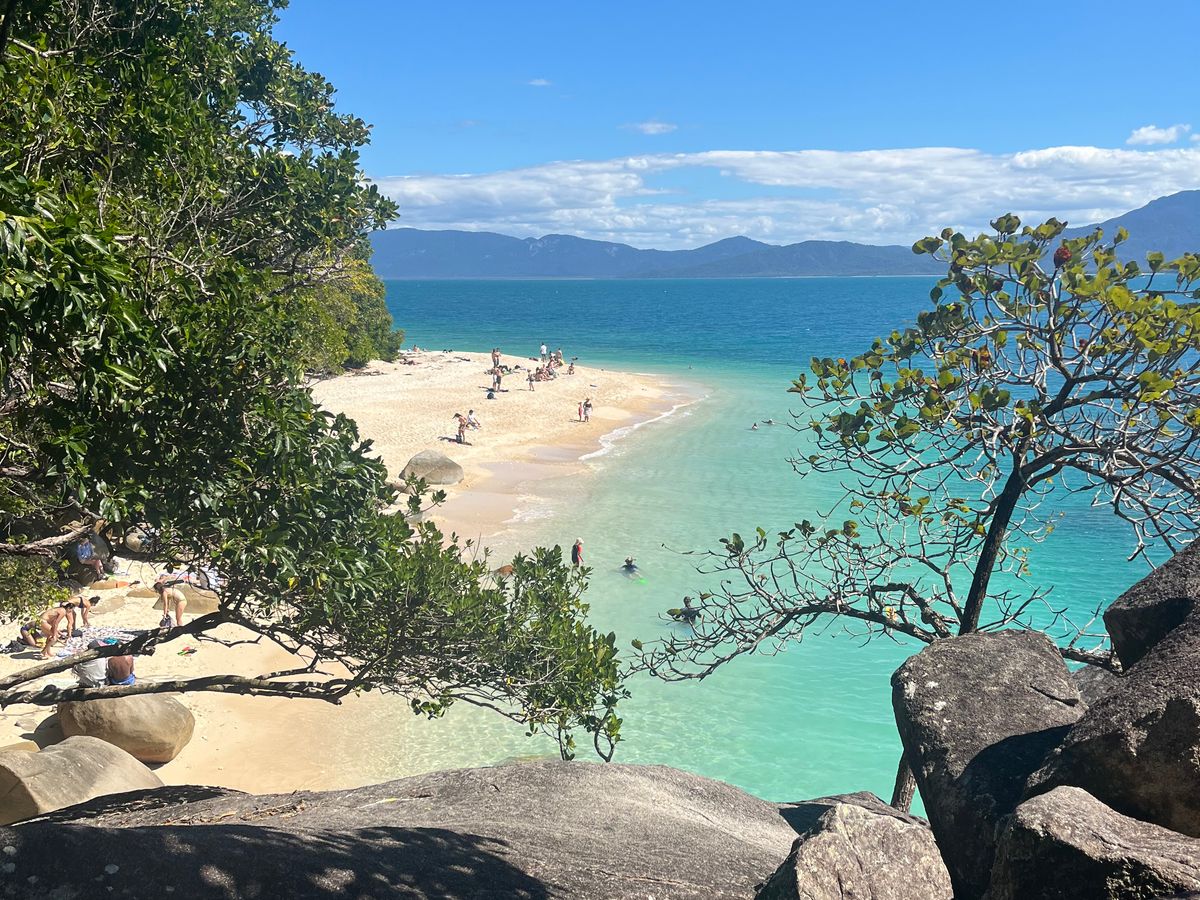 今回は8月参加で、海水温度が低くないのか心配しましたが、海に入ればそんなこと心配無用で、夢中でシュノーケルしました。まるで水族館の大きな水槽の中に入り込んだような、カラフルな魚達が無数。最高過ぎました。午後はフィッツロイに移動してバイキングの昼食。綺麗な海を見ながら食べれて、お味も美味しかったです。ヌーディビーチも写真映えの素敵なビーチでした。