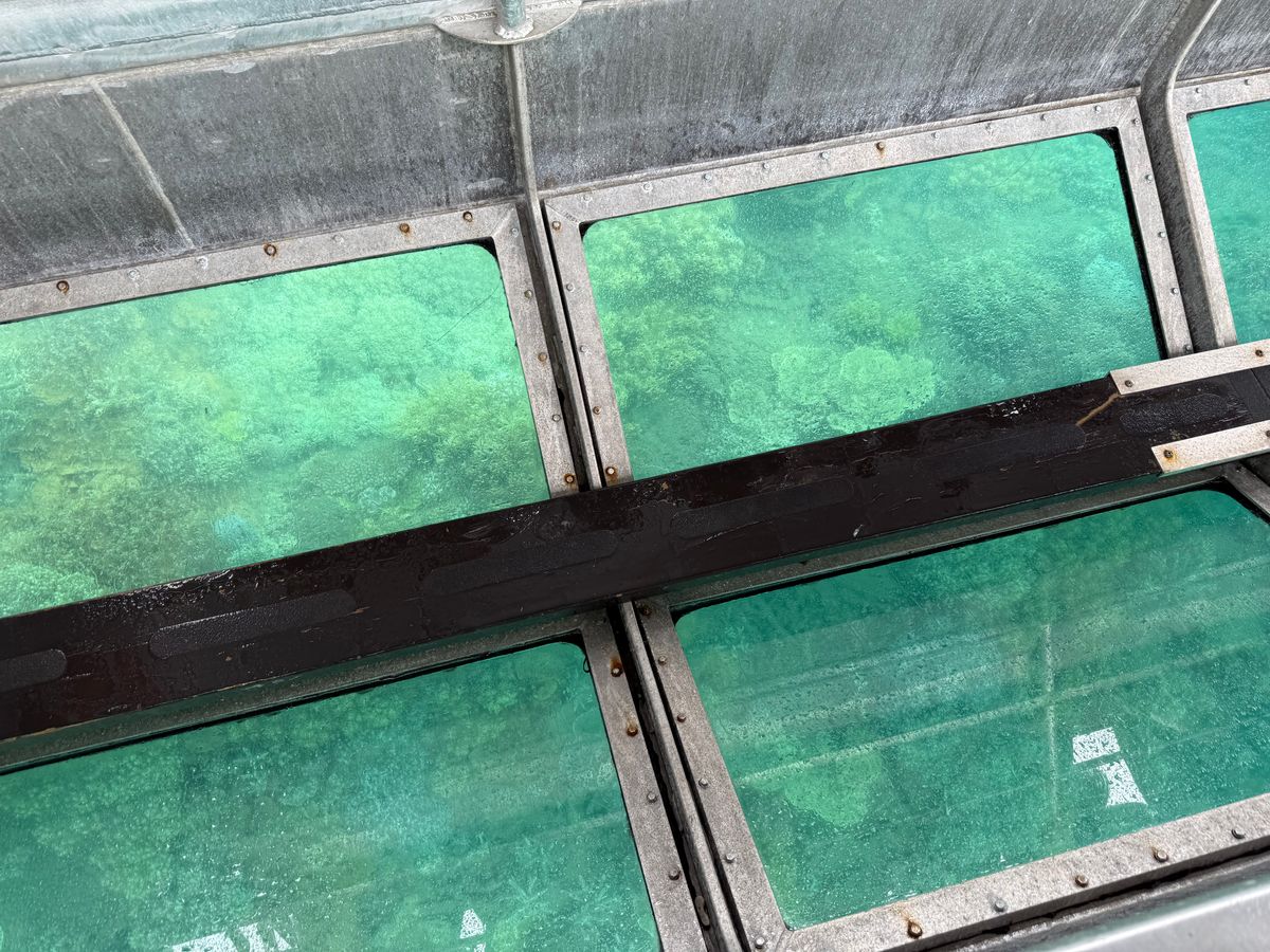 グラスボトムボートは、エンジン音や風の音で英語に慣れていないと聞き取るのが大変です。