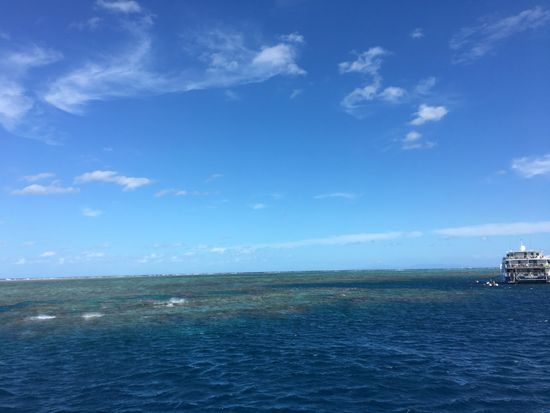朝、リーフ・フリート・ターミナルから高速船に乗り、グリーン島に向けて出航。船の中では、日本人のスタッフが回って来て、何でも教えてくれるので安心でした。約50分の航海は外洋のためけっこう揺れるので、船酔いをしている人を何人も見かけました。私は大丈夫でしたが・・・。グリーン島ではゆっくりと島を一周。ボードウォーク・ビーチウォークを楽しみました。その後さらにアウターリーフに向けて出航。ポンツーンに到着すると遅めのランチタイム・・・カレーがおいしかった!! その後1時間余りシュノーケルを楽しみました。海底一面に広がる珊瑚やすぐ目の前を通り過ぎるカラフルな熱帯魚に感動。世界遺産の島や海を満喫した一日でした。
