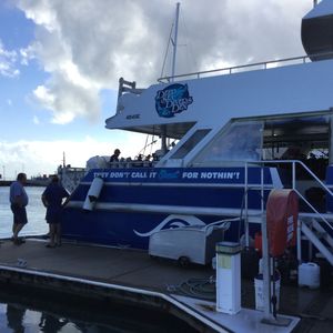 船着き場へ7時頃到着。近くのカフェで朝ごはんを食べました。結構早い時間からたくさんの観光客が集まり船に乗る為並び始めてました。船は少し揺れますが2階の外の席で酔う事なく快適でした。グリーン島へ到着すると桟橋のすぐ下にはたくさんの魚達がいました。早速ビーチへ行くと海も透き通っていてすぐ足元にも魚達がいて、楽しい時間を過ごせました。1時間ほどしてからアウターリーフへ向かう船に乗りました。アウターリーフの船中での食事も美味しく、シュノーケリングをしたり、2階のチェアに寝たりと結構ゆっくり過ごせたと思います。ぜひ参加してみてください、おすすめします。