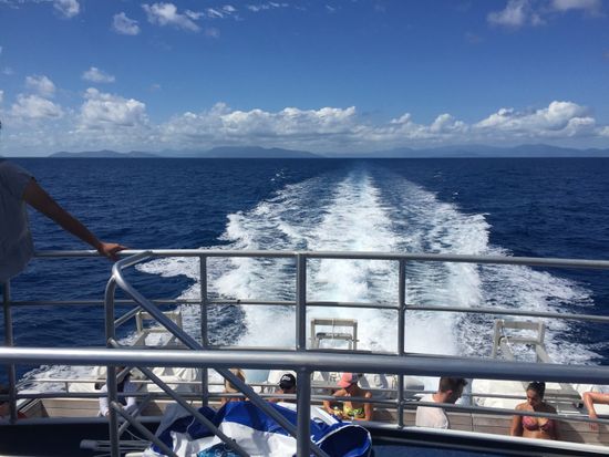クルーズに乗ってフィッツロイ島までは約50分、綺麗な景色を見ながらであっという間でした。到着してからはシュノーケリングをしたりグラスボトムボートでサンゴ礁を見に出かけたり、パドルスキーや海上トランポリンで遊んだりとあっという間に時間が過ぎました!