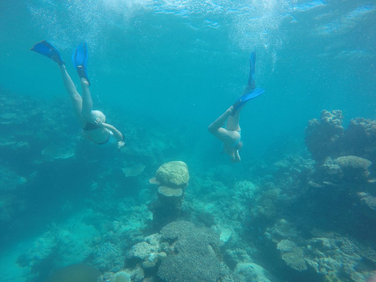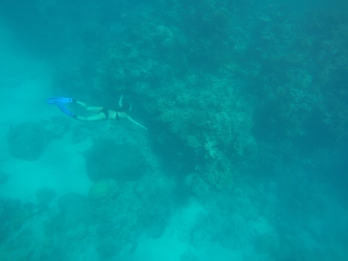 まずはシュノーケリングをしましたが、砂浜から少し泳いだだけで美しい珊瑚礁やたくさんの熱帯魚と会うことができました。