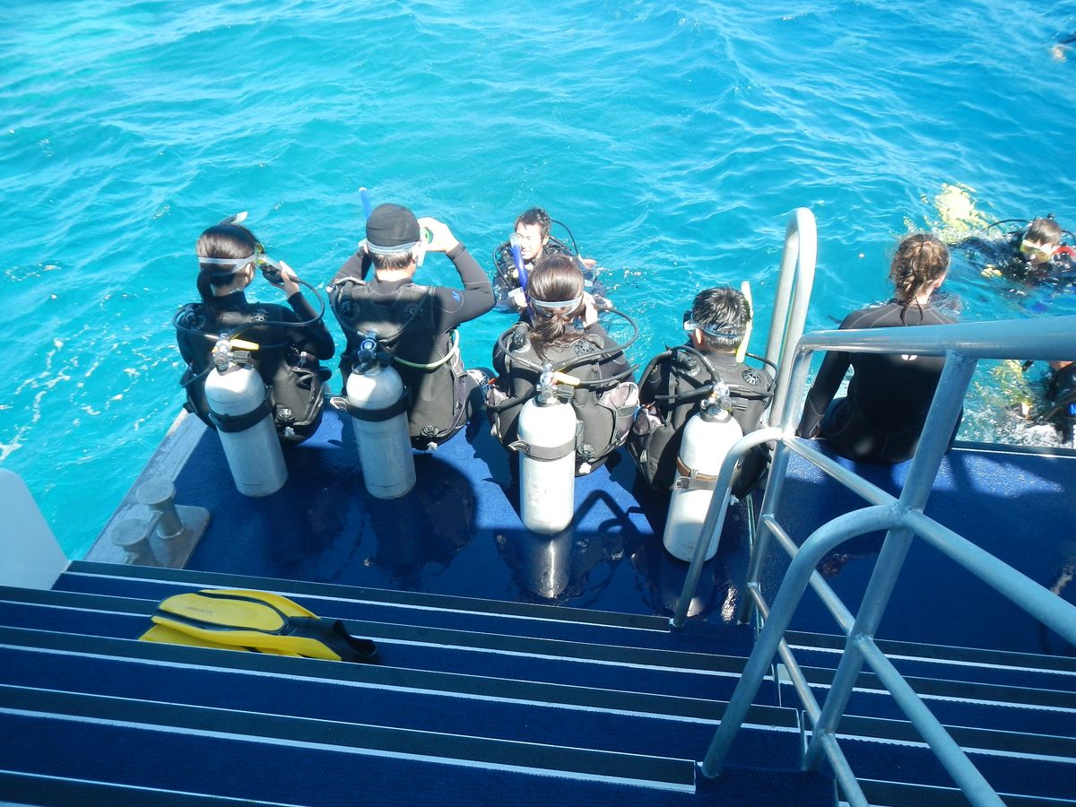 体験ダイビング2本に参加しました。船に乗ってる時間が長くて酔い止めは必須だなぁーと感じました。ダイビングじたいは綺麗なグレートバリアリーフに潜れたので満足です✨体験でしたので、インストラクターさんや友達と腕を組ながらの潜水でした。少し動きづらかったですが、体験なので仕方ないのかなぁーと思いました。魚は多くありませんが、シュノーケル中にうみがめ、ナポレオンフィッシュに出会えました‼(^^)すごく嬉しかったです。いつかまた、ライセンスをとってからダイビングしに行きたいです✨