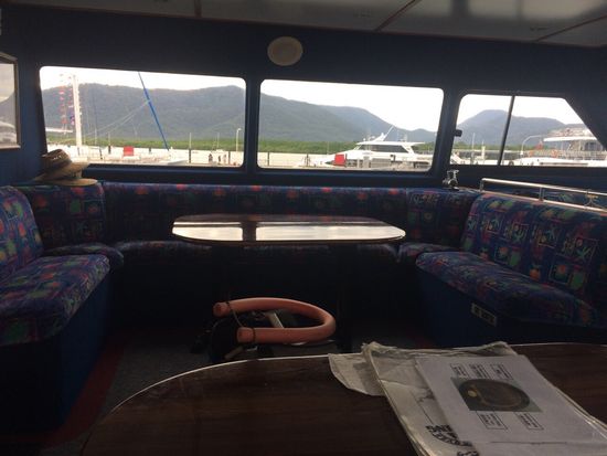 当日、ケアンズはあいにくの曇り空でしたが、ミコマスケイは晴天率が高いという話を聞き、ドキドキで向かいました!ケアンズからは中型の船で向かうため揺れは激しくありません。船酔いしやすい私も薬を飲んだので全く大丈夫でした!
