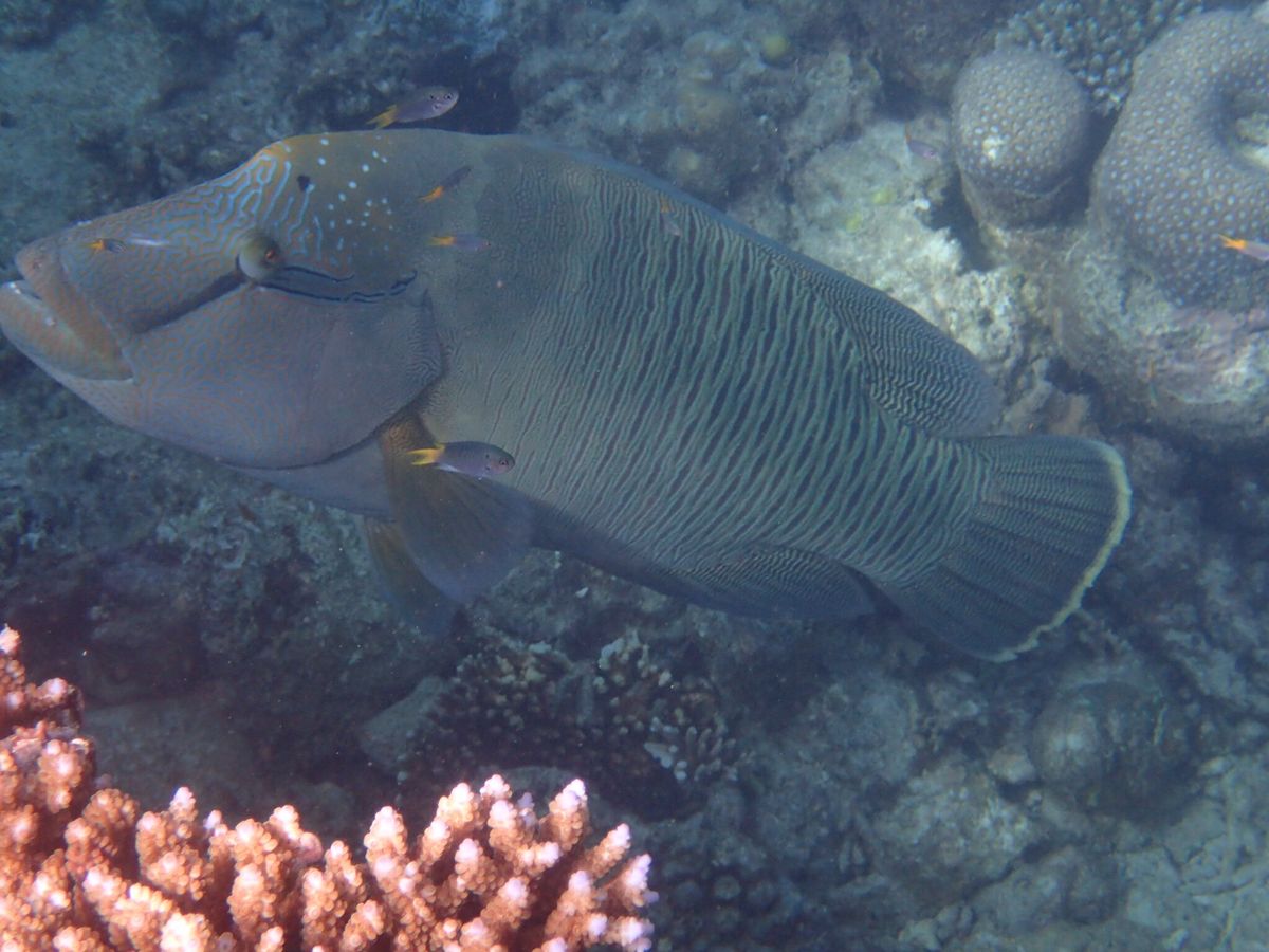 中でも、カメラマンさんに慣れている大きいナポレオンフィッシュがすぐ横に来て感動しました。