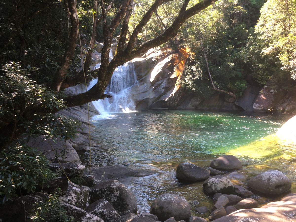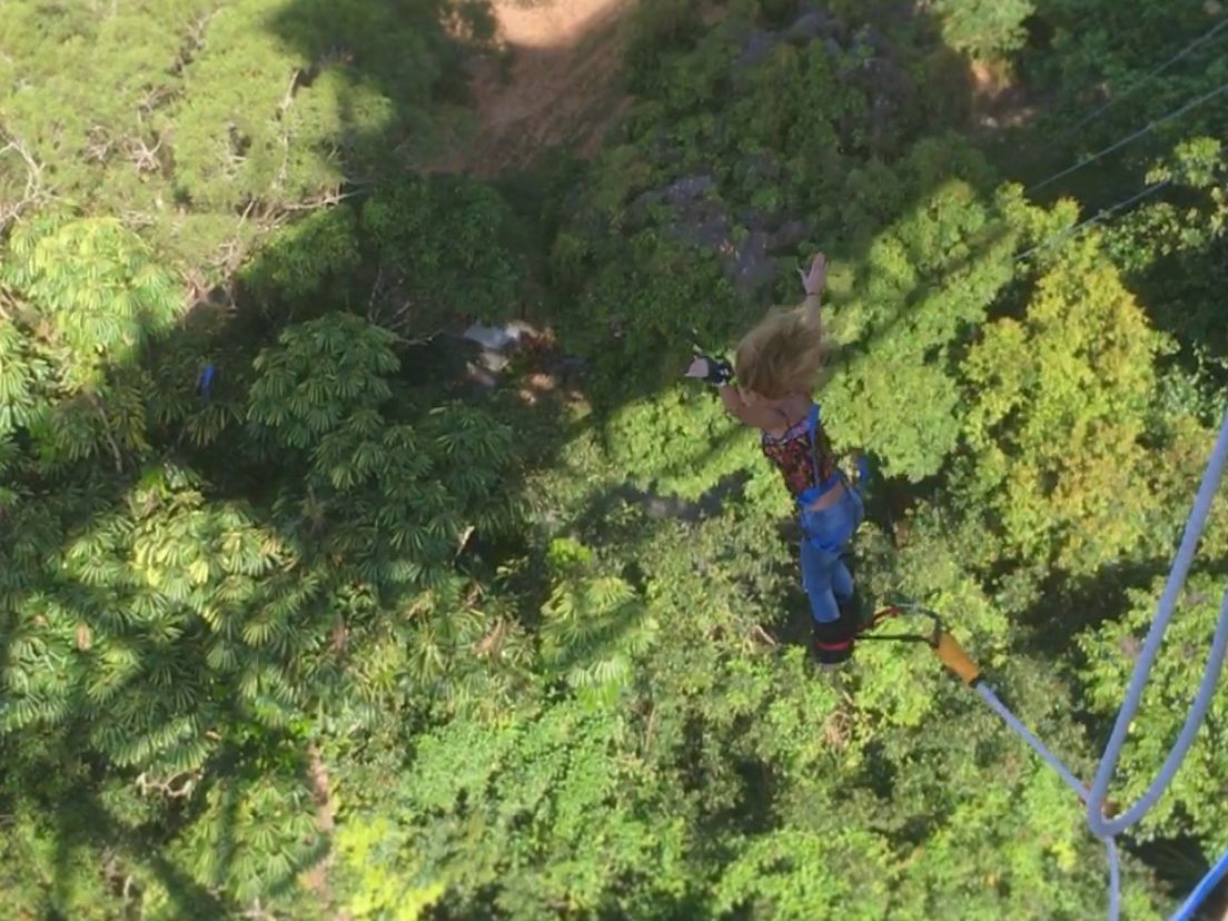 現場には送迎車で移動。着くとすぐに1キロほど山を登ります。登りは急勾配な坂が三本。それぞれ100メートルほど(かなり急)登り終わるとカナビラの付け方についての指導の後、キャニオニングスタート。まずは軽く川へジャンプその後命綱を使用し10メートルほど滝の中を下って行きます。(かなりアクティブ)次いで10メートルほどのジャンプ。その後上記を繰り返し最後はターザンロープのようなアクティビティ。ハードで最高なアクティビティでした!