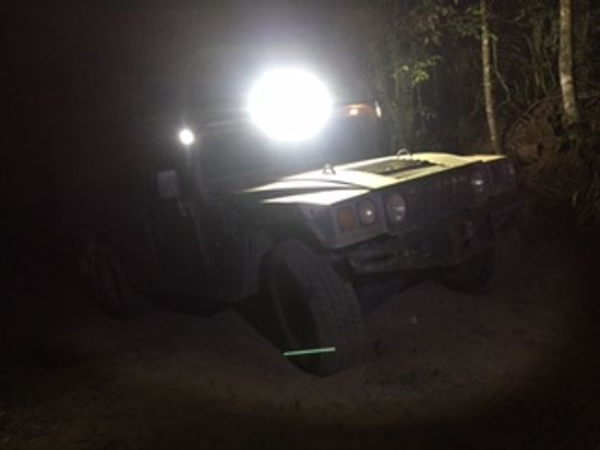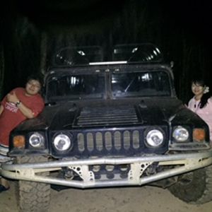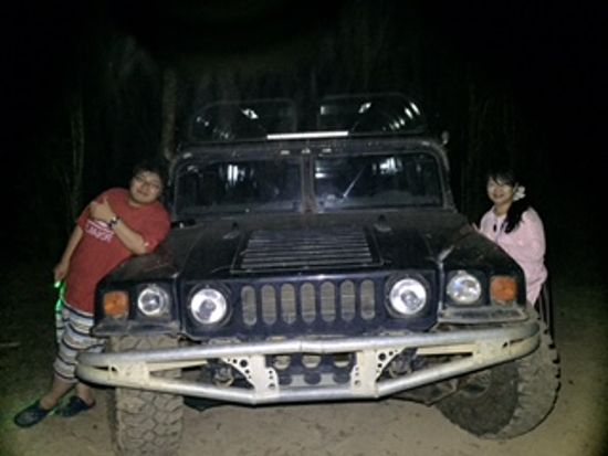 その後、場所を移動して夜の熱帯雨林の中をハマーで激走。ここを行くの⁉︎という道をガンガン走り、水しぶきを上げて小川を渡り、車は揺れに揺れ大興奮‼︎息子大喜び‼︎
