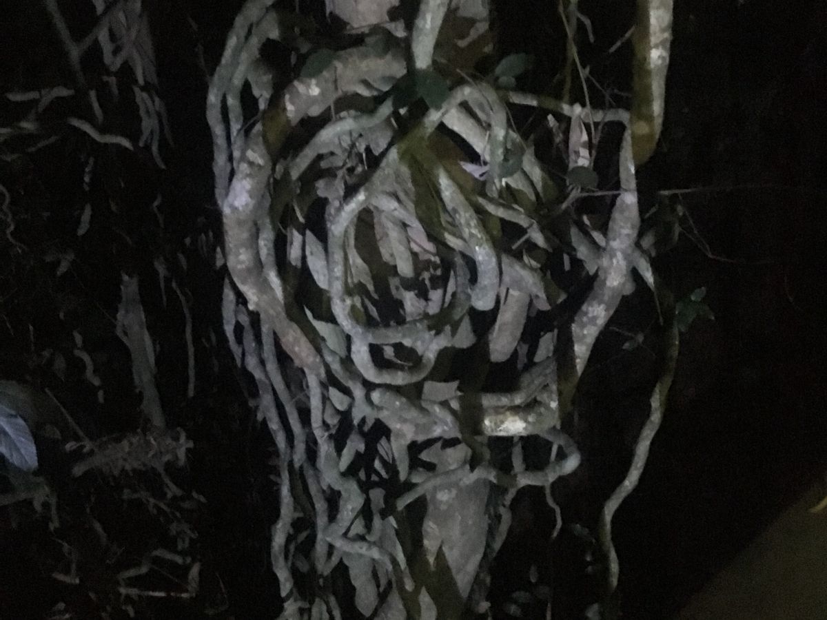 オージービーフでお腹を満たしたのち、真っ暗なジャングルの中の道無き道を4WDのごついバスで川に入ったりしながら進み…この時点で結構揺れる、たまに野生動物(フクロウとかカエルとか。時には木登りカンガルーが出るとか)が出る、テンションぐんぐん上がって来たところで絞め殺しを見に行くのですが夜中見ると本当に!迫力満点!!