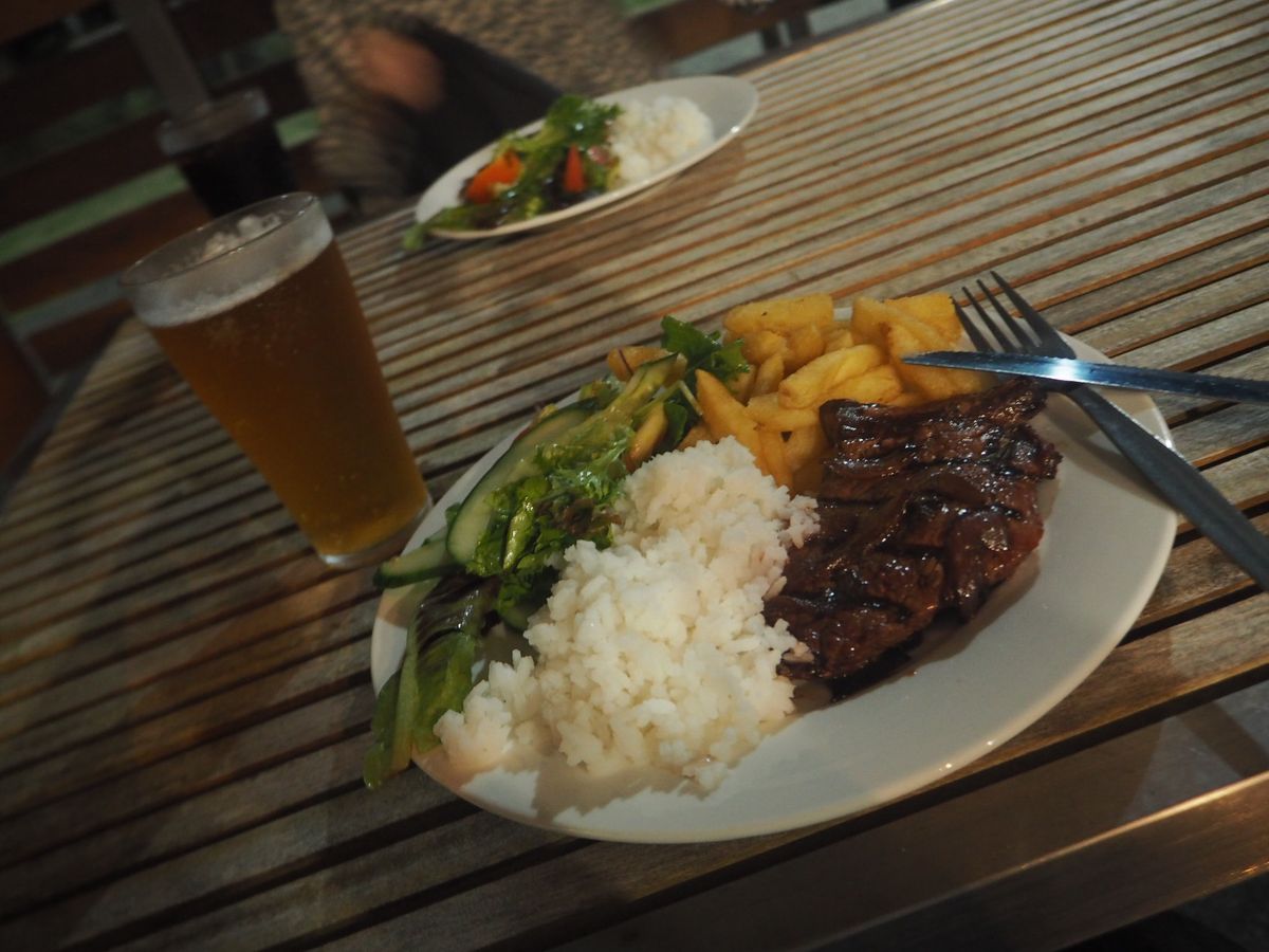 ミッションビーチでは、隣のレストランでの食事が無料になったり、