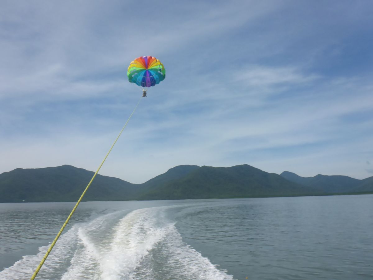 パラセイリングは、想像以上に高い位置まで上がり、大興奮でした!快晴で、とても気持ちよかったです。私は、高いところはあまり得意な方ではないのですが、機材がしっかりしていましたので、全く怖くありませんでした。