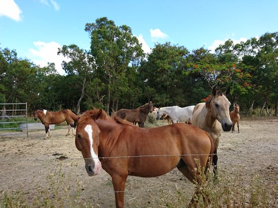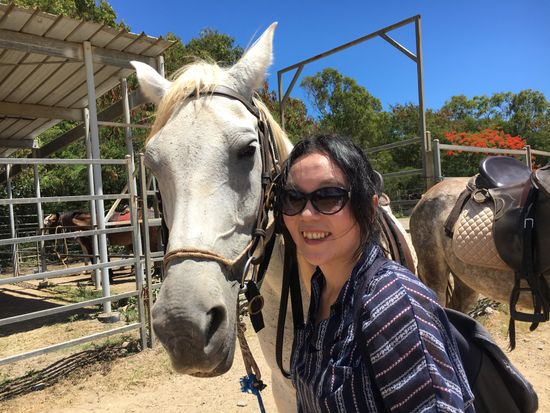 初めて馬に乗りましたが、スタッフがずっと周りにつていてくださっていたので恐怖を感じることなく、とても楽しめました。日本人のスタッフも3人いて日本語で説明してくださるので、初心者は安心して参加できていいと思いました。コースは、敷地内を回る感じです。敷地にマングローブの木などが植わっていて森のようになっていたり、少しひらけて遠くが見渡せられたりする場所があります。マングローブ周辺には水がチョロチョロと流れていましたが、時期によってはその水量が増えるようです。日本では見たことのない珍しい植物も見られて、楽しいコースでした。馬は、みなおとなしく、スタッフの方の言うことをきちんと聞いていて偉いと思いました。馬の感情は耳の動きで読み取ることができると初めて知り、耳の動きを見ながら乗馬するのが楽しかったです。私のグループは経験者のお客さんもいたので、最後に少し速足をやってみました。上手くできず一瞬で終わってしまいましたが、いい経験ができました。服装は、靴を履いていれば他はなんでも大丈夫です。スボンを貸していただけるので、(洗濯されてません笑)女性はスカートだと着替えやすくていいかもしれません。