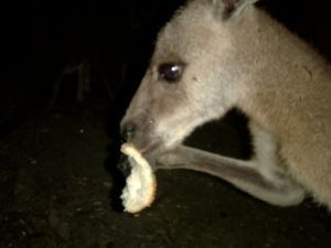 ハマー乗車前に先ずはカンガルーの餌付けを行ったのですが、昼間と違い夜は生き生きした
