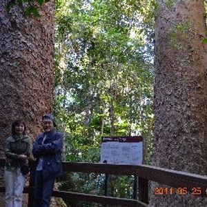 まずは海抜700Mのカルデラ湖「バリン湖」<写真1>でスコーンとお茶。猛毒の「腹赤黒蛇」君がお出迎え<写真2>。森の中へ入るとバカでかい木が二本「樹齢*千年の松ノ木です」シェーン「これ松?」私。木肌が日本で見るのと違って滑らか<写真3>。中国の紫禁城で白い木肌の松を見たけどあれと兄弟かも。