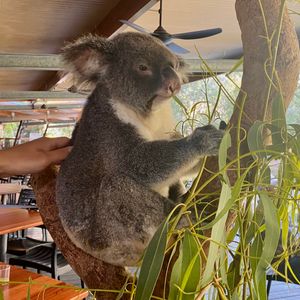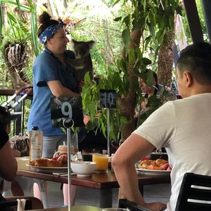 食事の場所には、コアラと朝食を申し込んでいる人しか入れないので、周りの人達はコアラは見えますが触れません。なかなか長時間(30分)触れないのでオススメです。朝食を食べている人達で変わりばんこで近づけます。終わりの方は独占状態でした。