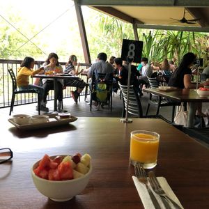 コアラとの朝食は私たち1組と、日本人の団体客のみでした。団体客の方とは入れ違いだったので、お互いにコアラは独占状態で自由に撮影できました。朝ごはんはとってもボリューミーで、フルーツと飲み物はおかわり自由でした。