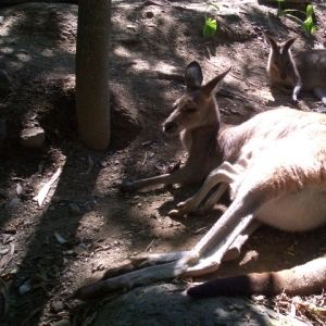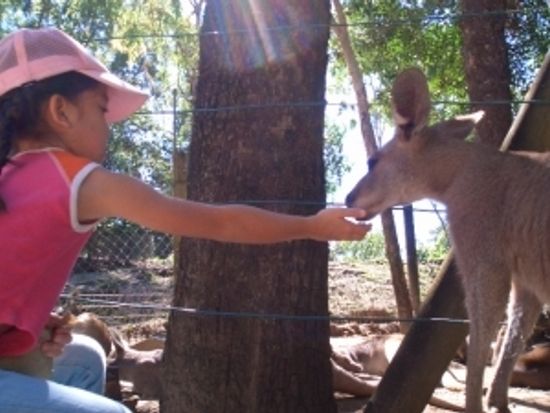 こちらの動物園広さはさほど大きくないところでした。ショーが重ならないように順になっているので入り口でもらうパンフの順に見れば午前中でしっかり見て回れるところでした。コアラとの写真のあとに、カンガルーのえさを上げる時間も十分にあるし・・・私たちは8:00の出発で14:30の帰りにしましたが少々時間をもてあましてましい、、お昼食べずに戻るなら12:00か12:30で、お昼食べてからというのであれば13:00か13:30の戻りが時間を無駄にすることなくという感じです。カンガルーの餌は入り口にしか売っていないのではじめに買っておかないとあとで面倒です。1ドルでした。そして午後にはおなかいっぱいでほとんどのカンガルーが寝てしまい、餌の食べも悪いので午前中にあげたほうが楽しいです。