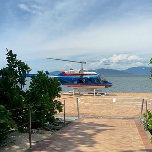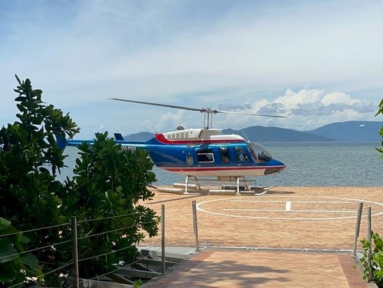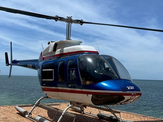 ヘリがふわっと浮き上がった瞬間、目の前に広がったのは、言葉を失うほど美しい海のグラデーション。