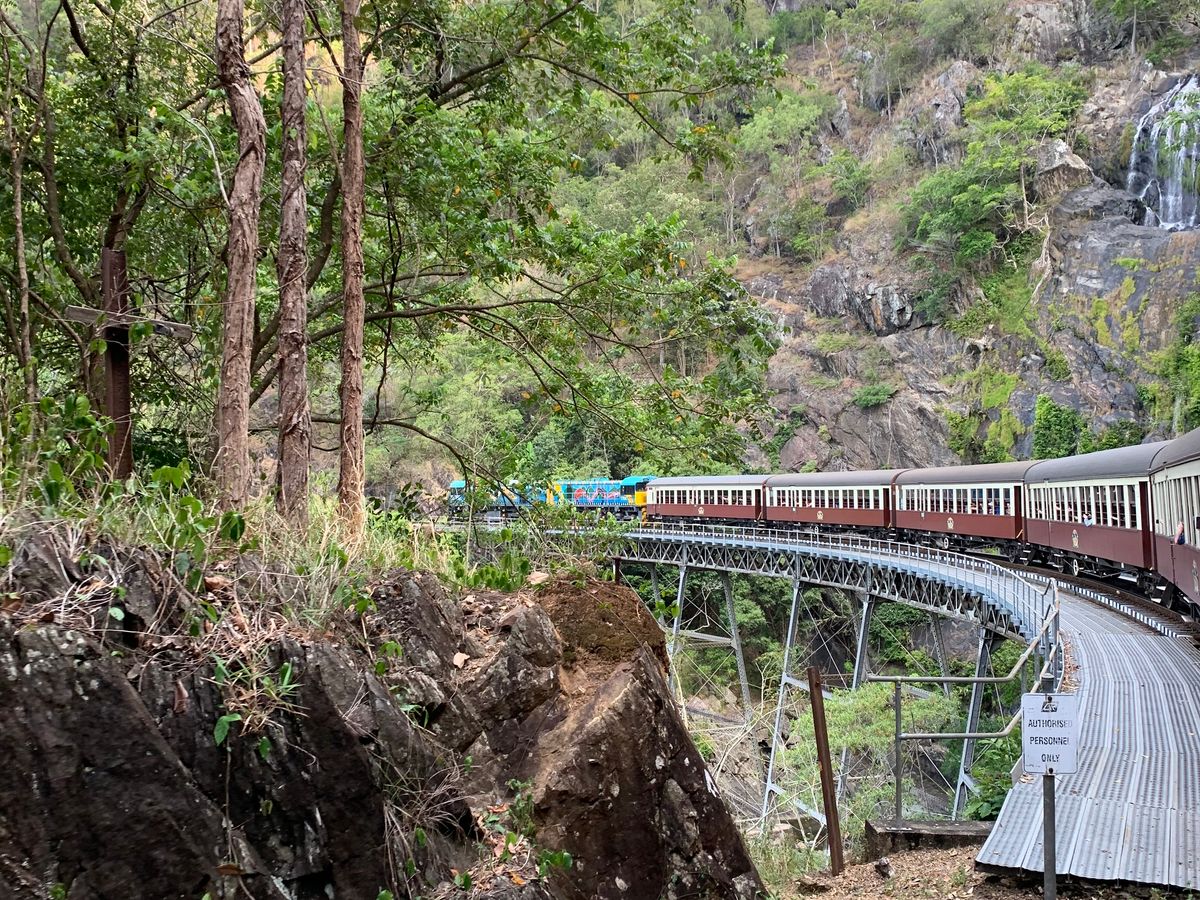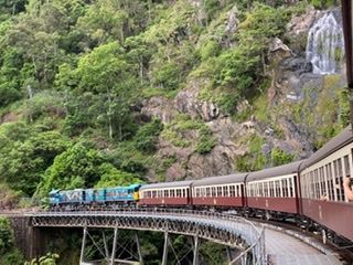 キュランダは雷雲の接近でスカイレールが運行しない危機に晒されましたが、無事に動きました。滞在時間はとても短く、ガイドさんがお勧めするお店を回るので精一杯でした。キュランダはもう少しのんびり滞在できたらよかったです。帰りの鉄道の景色は素晴らしかったです。