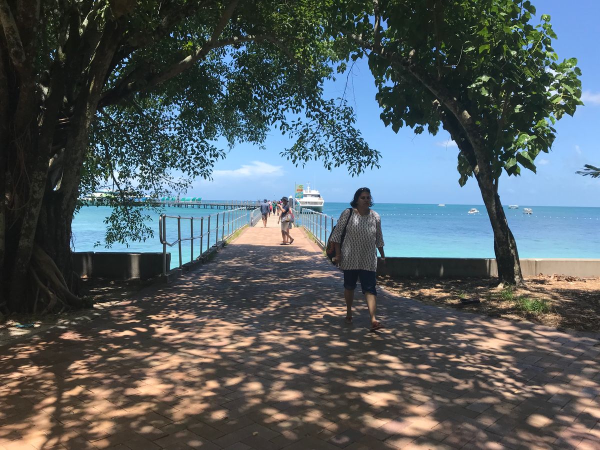 グレートバリアリーフでのシュノーケリングを目的にグリーン島へ行きました。が、雨季(12-4月)でスコールのような雨が1日に何度もふり、そのため海水も濁って何も見えずじまい、シュノーケリングもキャンセルでした。現地の方によると、5-7月ごろがいいそうです。