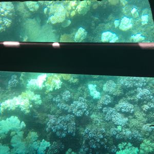 海中に持って入られらカメラか、ジップロックにスマホ入れて写真撮ればいいのでしょうが、忘れたので、半潜水艇からの一枚を。
