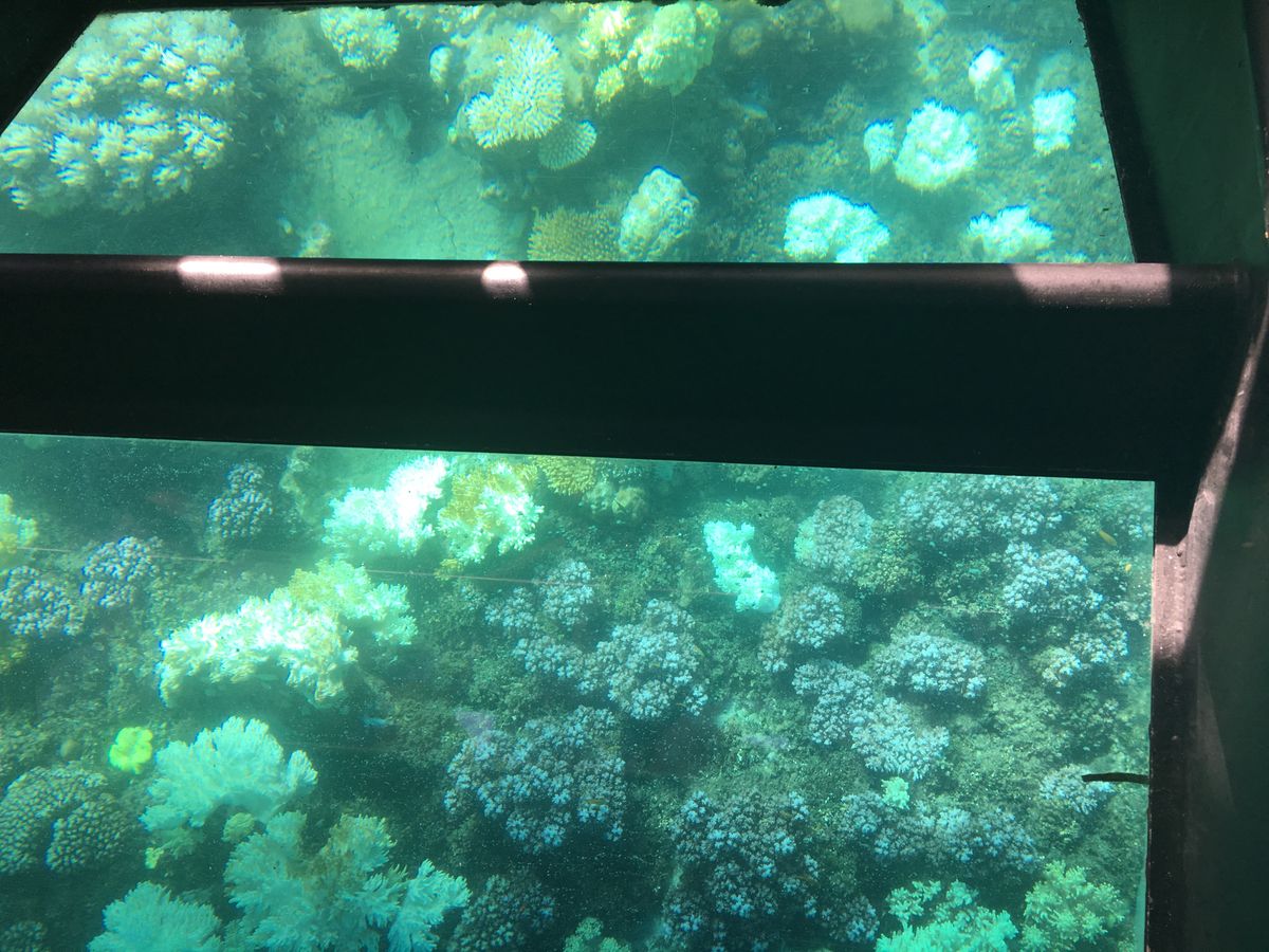 海中に持って入られらカメラか、ジップロックにスマホ入れて写真撮ればいいのでしょうが、忘れたので、半潜水艇からの一枚を。