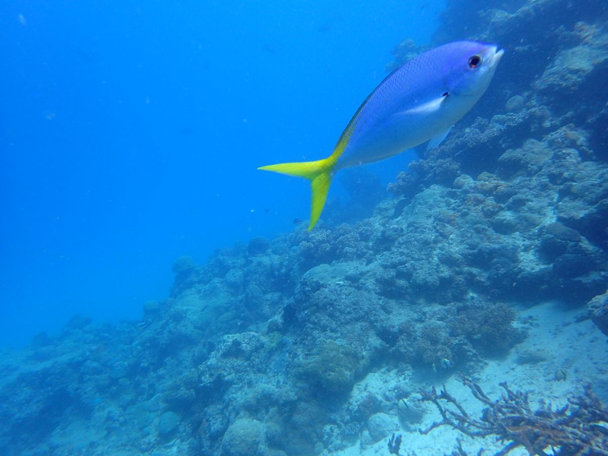 一番のシュノーケルポイントは、船着き場の桟橋の下です。桟橋の影で暗いのが難点ですが、水族館の中に居るくらいにお魚が見られます。また、桟橋から少し離れた場所も多くのお魚が見られ、ウミガメとエイにも遭遇しました。