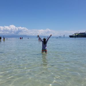 グラスボートとスノーケリングのどちらかが選択できますが、3歳の息子と66歳の母はグラスボード、私はスノーケリングを選択しました。結果としてグラスボートを選んだほうがよかったようです。スノーケリングする場所として指定された場所は透明度は期待したほどでもなく、魚もカラフルなものはほとんどいません。がっかりしました。後で気づいたのですが他の観光客はフェリー降り場の付近でスノーケリングをしており、そこの方がまだ綺麗です。安全上の理由でわざとそこから離れた透明度がイマイチな場所をスノーケリングスポットとして案内しているとのこと。
