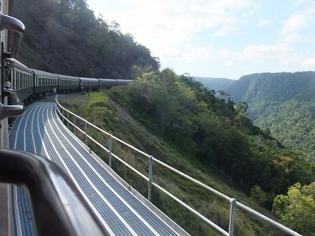 グリーン島ではグラスボトムボートに乗ったので残りの自由時間、1時間はビーチでぼんやりしておりました。海外であくせく動き回ることが多いので貴重な時間でした。スカイレールは空いていたせいかグループごとに乗ることができ快適な時間を過ごせました。キュランダ村での滞在は1時間と短くコアラガーデンへ行きコアラを抱っこしてカンガルーやワラビーを見て少し買い物をしたら終了でした。スカイレール乗り場からコアラガーデンは1番遠く歩いて(のぼり坂なのもあり)15分弱かかりました。ただコアラガーデンも空いていたので待ち時間なくまわることができ、ちょうどウオンバットのエサの時間で動いている時間に会えたのも良かったです。最後に乗った電車では、担当の女性ガイドさんが見どころになると説明しに来てくださったのもありがたかったです。あわただしい感じですが要所は回れ、効率的だなと思いました。