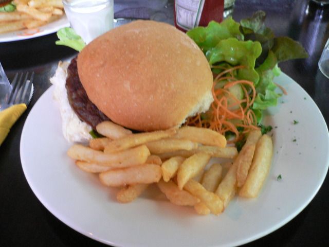 お昼はチーズバーガー(大量のポテト+飲物つき)13Aドル