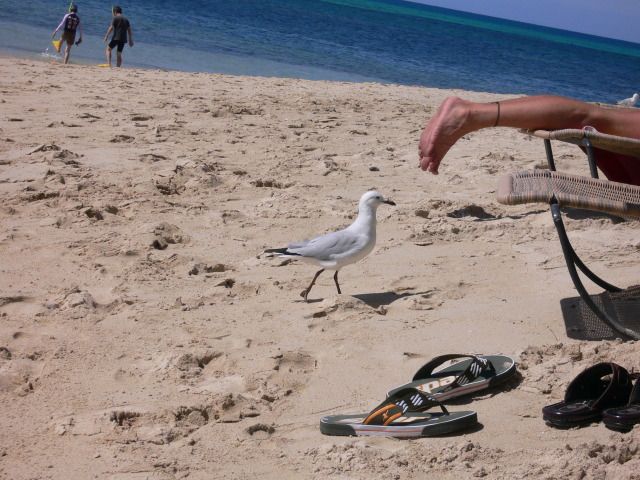 8月お盆休みに行ってきました。南半球は冬とはいえ照りつけんる太陽は夏そのものでした。30分も甲羅干しをしているろじりじりと背中が痛くなりそう。しかしやはりそこは冬、海水だけは少々冷たくウェットスーツを着ていないと胸まで水に入るのはちょっと冷たいかな。外国人は平気で泳いでいましたが。行きの高速船は展望デッキにいたので風が強く、かなり揺れて50分が長く感じましたが、途中くじらに遭遇。船がスピードを落とし近くまで寄ってくれたのでまじかに生くじらを見ることができ感激でした。
