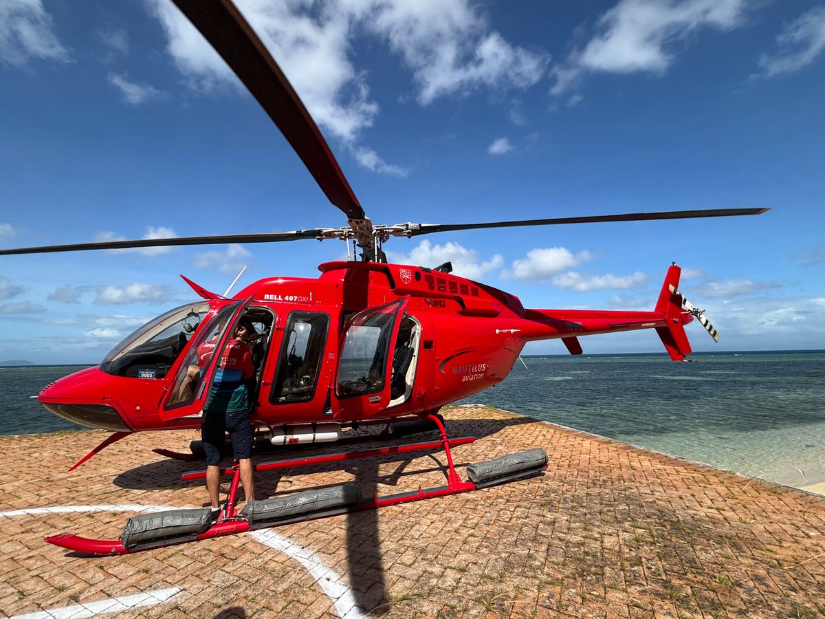 Thank you for taking the time to leave this feedback, it is very much appreciated. I am thrilled that you had such a good experience when traveling with us on the Helicopter, and I will be sure to pass your feedback through to the Reef Partner regarding the seasick tablets.