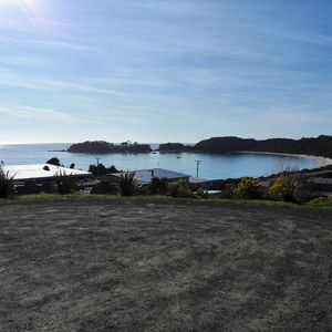 時間が来ると点呼、バスに乗り込んでまずはフェリー乗り場まで。フェリーではバスから降りてデッキから海を眺められます。ブルーニー島へ到着後、海沿いの展望が効く砂丘の下で休憩します。階段で登れますが、結構きつい。なお、ここはペンギンの住処にもなっており、夕刻になると続々と海から戻ってくるそうです。ツアーのメンバーの中には、近くに泊まって夕方戻ってくる計画の方もいらっしゃいました。
