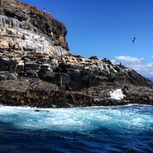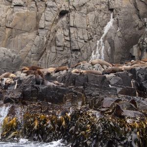 ブルーニー島の最南端、オットセイがゴロゴロしているゴールまで、イルカやミズナギドリやダイナミックな地形を楽しみながら荒波に揉まれます。真夏のオーストラリアとは言え、南緯が北緯換算で北海道位なので、沖に出て風に吹かれると激寒で修行の様でした!ウインドジャケットを貸してくれますが、十分暖かい格好を準備して参加することをお勧めします。