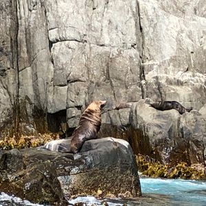 期待してた野生のペンギンは見れませんでしたが、アザラシ(?)は見れました。でも運がいい時はイルカ・クジラ・ペンギン・アザラシと全て見られる時もあるそうなのでせめてもう1種類見たかったですが仕方がないです。でも、自然の迫力に圧倒と感動しました。私が参加した2月の中旬は寒いかなと思いましたが日本の終盤の秋くらいの気温で我慢できない程の寒さ(極寒)でもなく私が思っていた程は寒くなかったです。船上ではレインコートのような服を貸してくれるのでそれもあってか寒くはなかったです。